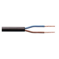 Aansluitsnoer bestaande uit 2 aders met beiden 0,75 mm2. Rondom de 2 draden zit een zwarte PVC isolering.
