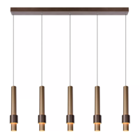 ProductomschrijvingWaarom jezelf beperkt tot 4 lichtpunten als je er ook 5 kan kiezen? Deze hanglamp genaamd Margary brengt een luxueuze eyecatcher binnen in je interieur. Ze past perfect boven de eettafel van een hedendaags interieur, maar het uitgekiende materialenpallet en de kleurkeuzes blenden evengoed in een eerder landelijke stijl. De aluminium bevestigingsplaat vormt de basis voor de 5 slanke pendels. Aan elk van hen hangt een licht conische aluminium cilinder met daarin de lichtpunten verwerkt. In het meervoud, inderdaad. Want naast een downlighter helemaal onderin de cilinder plooit een tweede geïntegreerde ledlamp zich rond de elegante koker. Op zijn beurt omringd door een tweede cilinder. Het uitgekiende design van deze vormen en hun verhouding creëren een mysterieuze gloed. Het resultaat is een instant eyecatcher met sterallures.