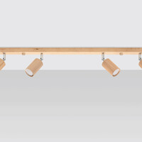 ProductomschrijvingAansluiting: GU10, 6x40W, 6x12W LED, 50-60Hz, ~220-230V, IP20, Elektrische veiligheidsklasse ILichtbron niet inbegrepenAfmeting: 120*5*20 cm Materiaal: hout Kleur: natuurlijk hout