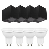 Set van 4 LED Wandlamp Buiten - 4x 4W - 3000K - Zwart